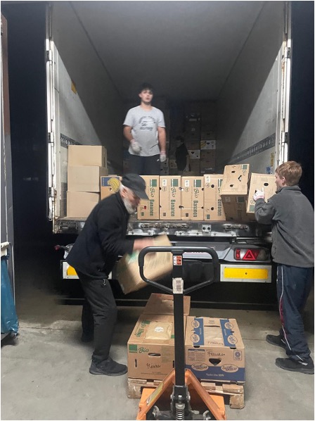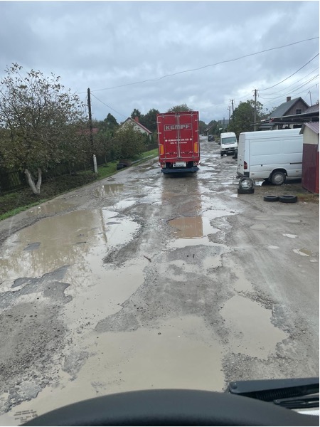 Am Dienstag starteten wir um 6:00 Uhr und gerieten direkt in den Berufsverkehr von Baia Mare, was uns über eine Stunde kostete. Gegen 15:00 Uhr waren wir an der ukrainischen Grenze. Dank Liviu, der seine Kontakte zur Feuerwehr nutzte, konnten wir an etwa 50 LKW vorbeifahren. Nach zwei Stunden waren wir in der Ukraine, wo uns Andre begrüßte und uns zum Lager vorausfuhr. Das Team dort wollte noch am selben Abend abladen, was um 18:45 Uhr begann. Gegen 22:30 Uhr war der LKW leer, und wir fuhren zu Andre nach Hause.